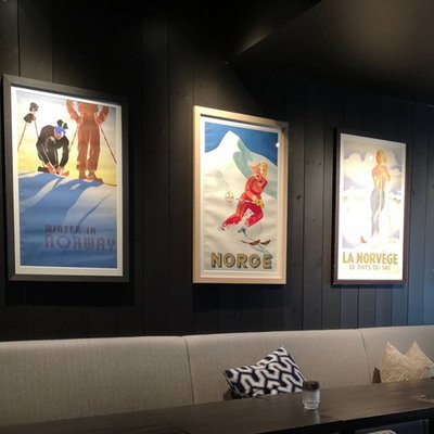 Ski posters on the wall in a hotel in Norway.
